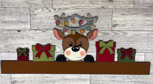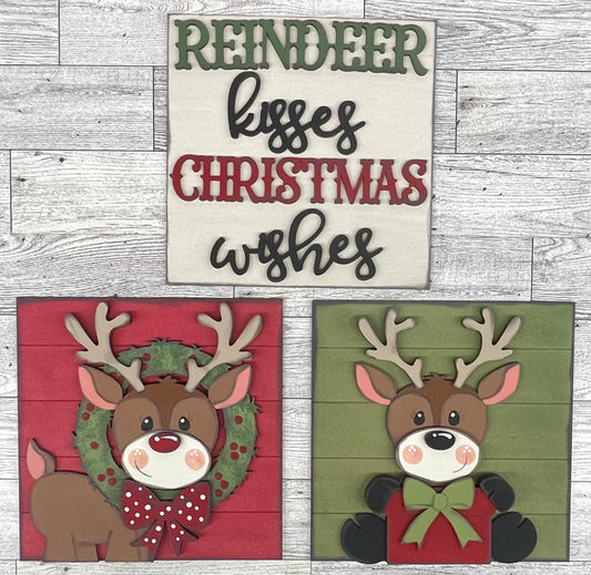 Both November 2025 Insert and blocks only - Hello Door Sign Insert and Reindeer Joy stander Kit- doesn't include the door sign House Ladder Blocks Only unpainted cutouts, Sign backer and house leaning ladder