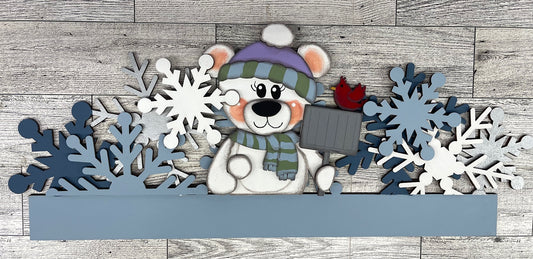 December - Add On Polar Bear on sled Stander - unpainted wood cutouts, ready for you to paint