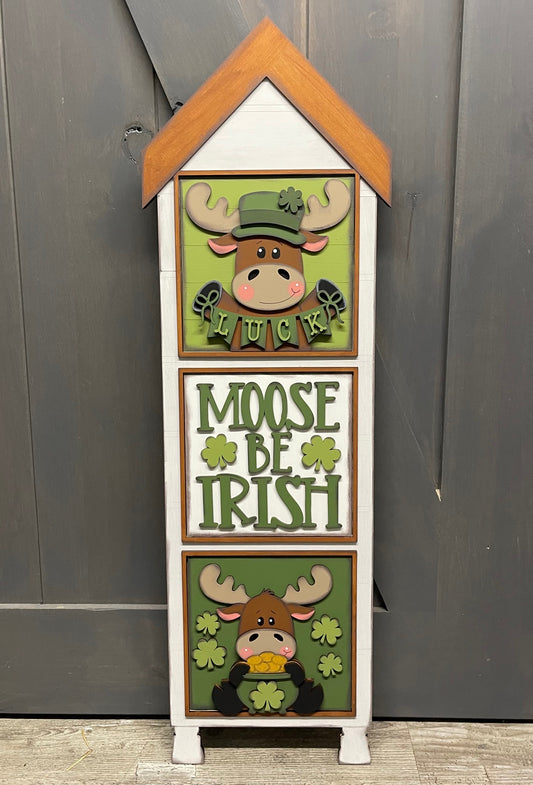 Both June 2025 Insert and blocks only - June Craft Kit - Hello Door Sign Insert and House Ladder Blocks Only unpainted cutouts, Bonus Patriotic Moose Stander Kit- doesn't include the door sign backer and house leaning ladder
