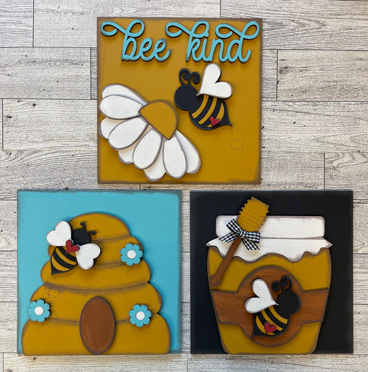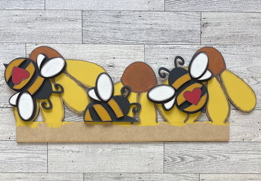 Both April 2025 Insert and blocks only - April Craft Kit - Hello Door Sign Insert and House Ladder Blocks Only unpainted cutouts, Bonus Bee Garland Kit - doesn't include the door sign backer and house leaning ladder