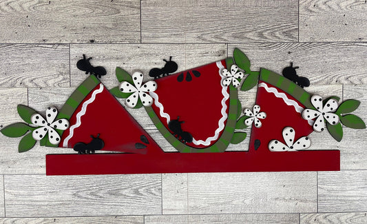 Both May 2025 Insert and blocks only - May Craft Kit - Hello Door Sign Insert and House Ladder Blocks Only unpainted cutouts, Bonus Watermelon Gnome Kit- doesn't include the door sign backer and house leaning ladder