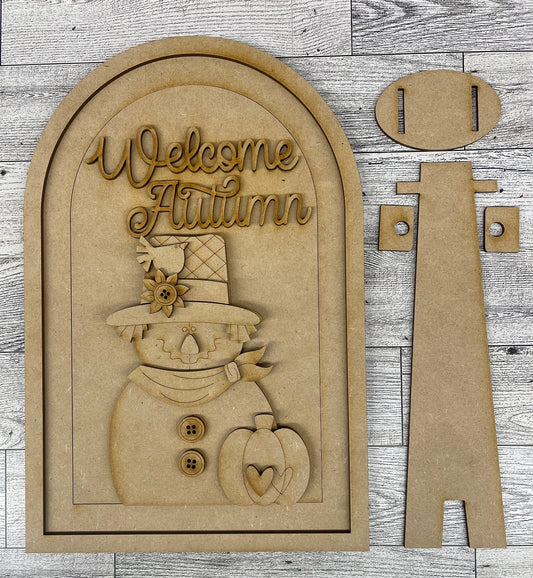 Welcome Autumn Scarecrow Frame Insert cutouts - unpainted wooden cutouts, ready for you to paint
