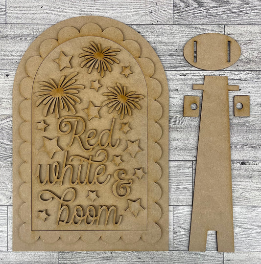 Red White & Boom Frame Insert cutouts - unpainted wooden cutouts, ready for you to paint