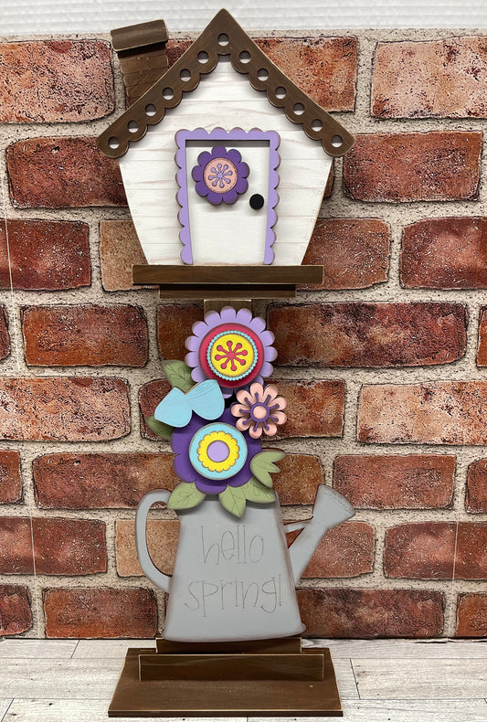 Hello Spring Watering Can Birdhouse changeable standing kit only - wood pieces, unpainted wood cutouts, ready for you to paint, sign backer is not included