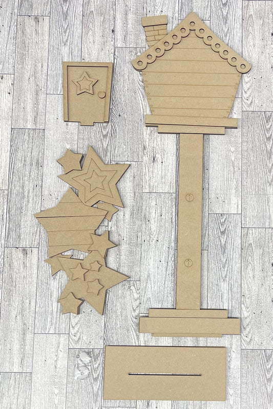 4th of July Stars Birdhouse changeable standing kit only - wood pieces, unpainted wood cutouts, ready for you to paint, sign backer is not included