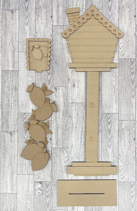 Lemons Birdhouse changeable standing kit only - wood pieces, unpainted wood cutouts, ready for you to paint, sign backer is not included