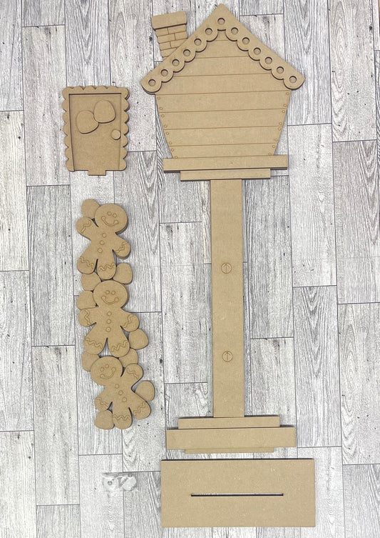 Gingerbread Birdhouse changeable standing kit only - wood pieces, unpainted wood cutouts, ready for you to paint, sign backer is not included