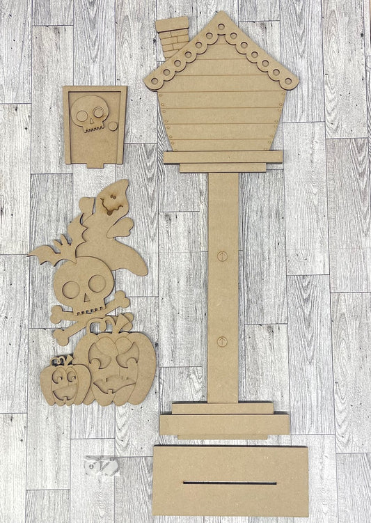 Halloween Birdhouse changeable standing kit only - wood pieces, unpainted wood cutouts, ready for you to paint, sign backer is not included