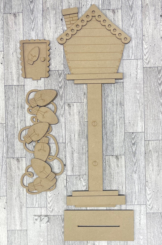 Christmas Lights Birdhouse changeable standing kit only - wood pieces, unpainted wood cutouts, ready for you to paint, sign backer is not included