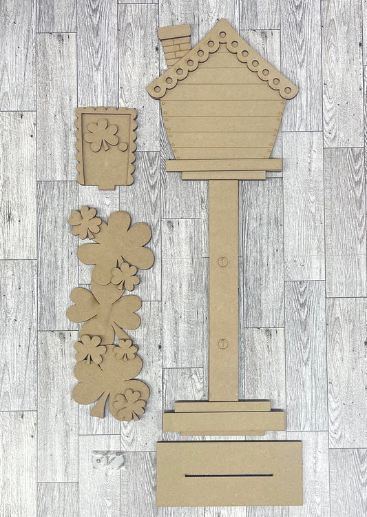 St. Patrick's Day Birdhouse changeable standing kit only - wood pieces, unpainted wood cutouts, ready for you to paint, sign backer is not included