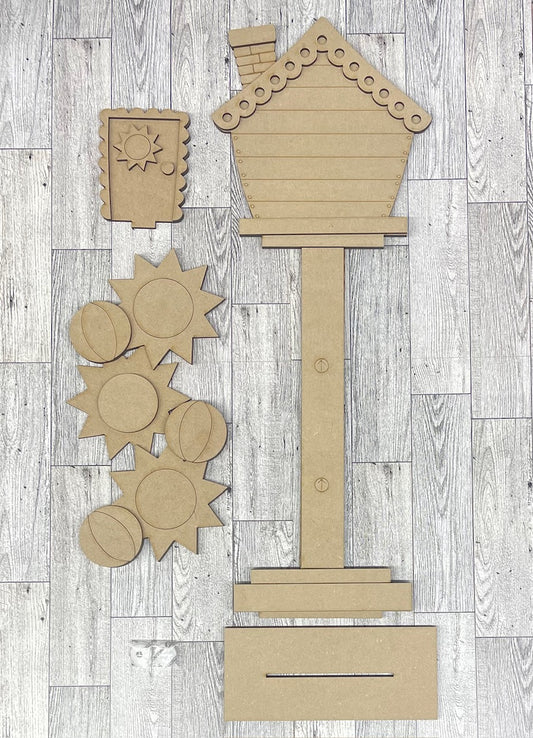 Summer Birdhouse changeable standing kit only - wood pieces, unpainted wood cutouts, ready for you to paint, sign backer is not included