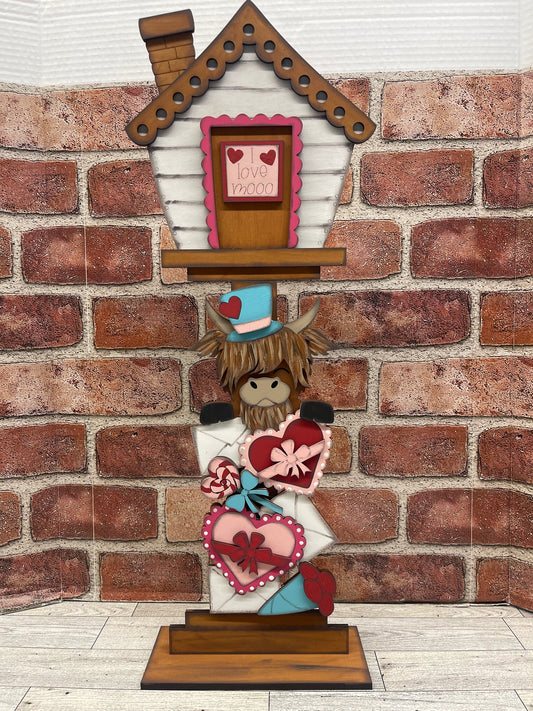 Valentines Highland Cow Birdhouse changeable standing kit only - wood pieces, unpainted wood cutouts, ready for you to paint, sign backer is not included