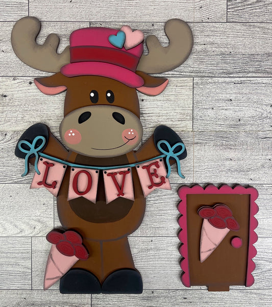 Valentines Moose Birdhouse changeable standing kit only - wood pieces, unpainted wood cutouts, ready for you to paint, sign backer is not included