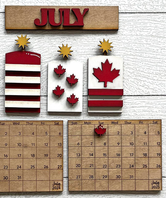 July 2025 Calendar Insert - Unpainted Wood Cutouts