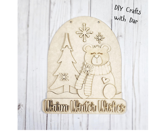 December - Add On Polar Bear Globe Door Sign - unpainted wood cutouts, ready for you to paint