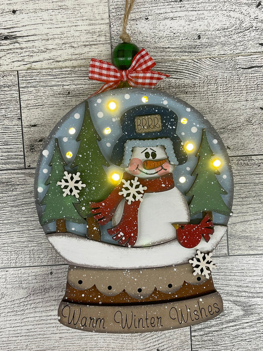 Snowman - lighted Christmas Globe Ornament or Stander - unpainted wood cutouts, ready for you to paint
