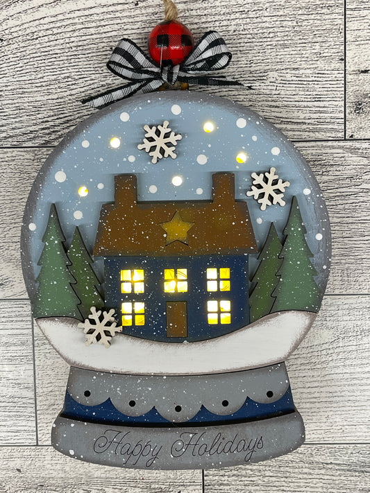 Christmas Cottage - lighted Christmas Globe Ornament or Stander - unpainted wood cutouts, ready for you to paint