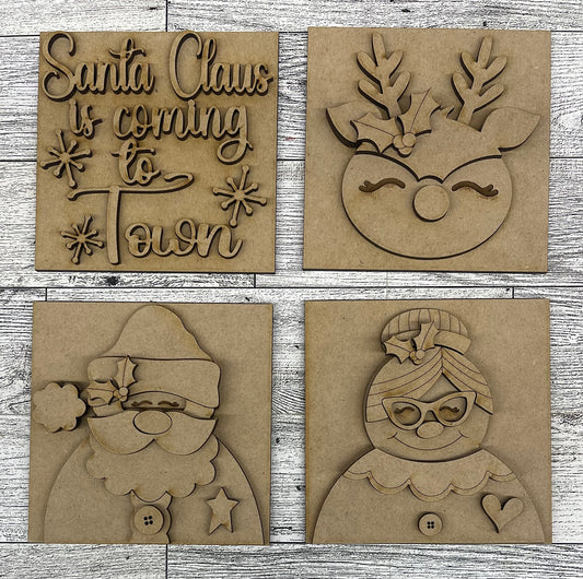 Santa Claus is Coming to Town Leaning ladder inserts and sign cutouts - unpainted wooden cutouts, ready for you to paint