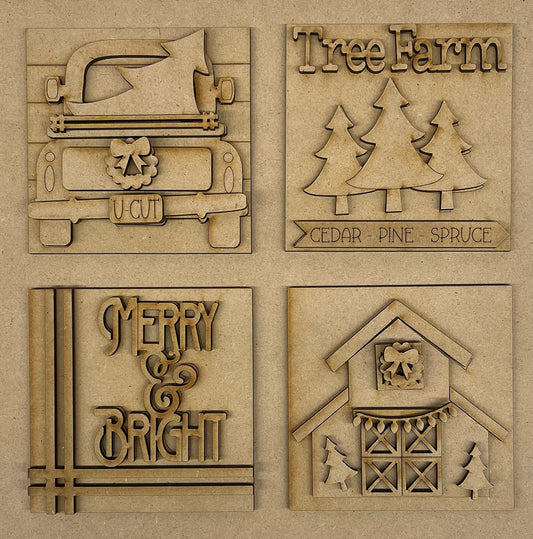 Merry & Bright Tree Farm Leaning ladder inserts and sign cutouts - unpainted wooden cutouts, ready for you to paint