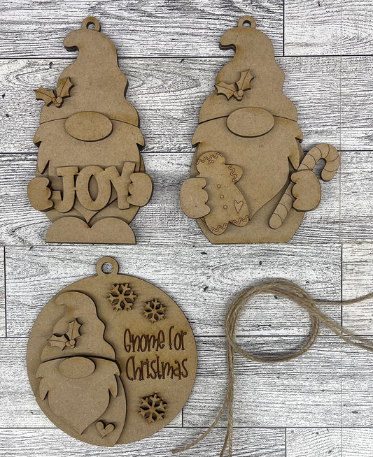 Gnome Trio Christmas Ornaments unpainted cutouts