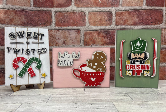 Sweet & Twisted - Gingerbread Cocoa, Nutcracker & Candy Cane cutouts - unpainted wooden cutouts, ready for you to paint