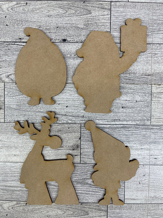 Christmas Characters - Santa, Reindeer, Elf & Penguin cutouts - unpainted wooden cutouts, ready for you to paint