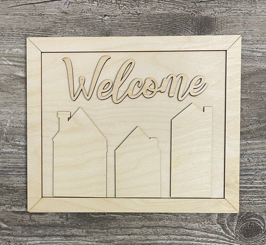 Welcome House Sign unfinished wooden Sign with Cutouts