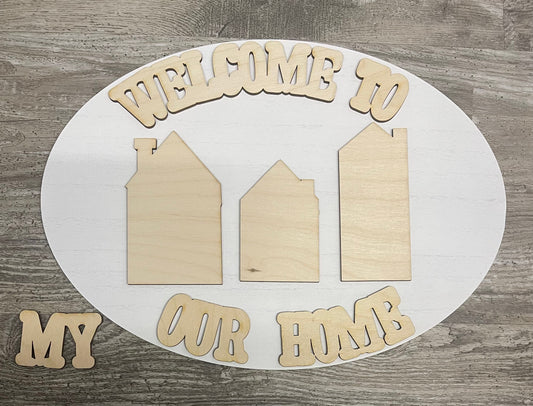 Welcome to our/my Home - oval is not included, unfinished cutouts, ready to paint