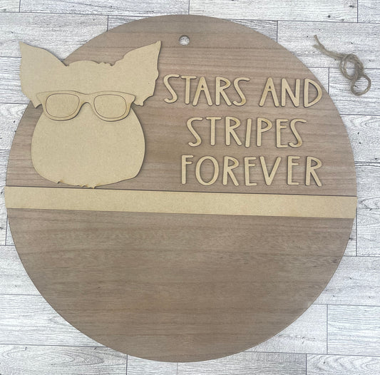 Stars and Stripes Forever Patriotic Pig sign pieces - Unfinished wooden pig cutout pieces, back circle not included
