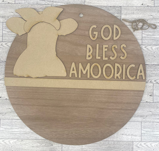 God Bless Amoorica Patriotic Cow sign pieces - Unfinished wooden cow cutout pieces, back circle not included
