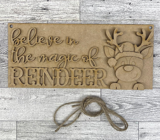 June - Add On Reindeer in Chimney Door Sign - 18 Inches - unpainted wood cutouts, ready for you to paint