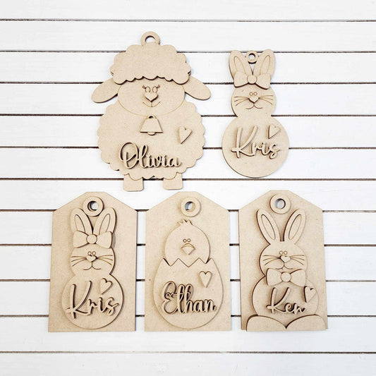 Easter Tag Set - Wood Cutouts unpainted ready for you to paint - Ribbon and Beads not included