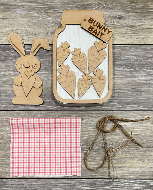 Bunny Bait Mason Jar Kit - Wood Cutouts unpainted ready for you to paint