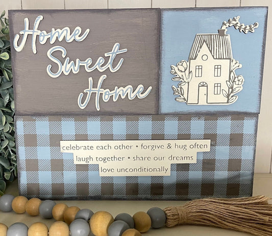 set of 4 Houses Only - for Home Sweet Home Sign, unpainted wood pieces.