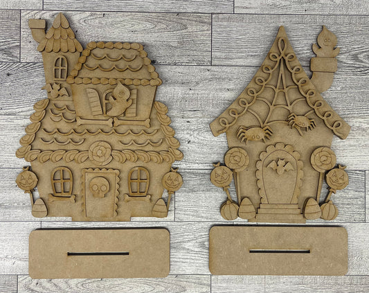 Spooky Halloween House Standers Set of Two - unpainted cutouts, ready to paint