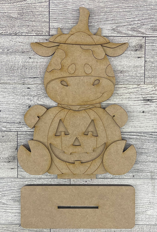 Halloween Cow with Pumpkin Stander - unpainted cutouts, ready to paint