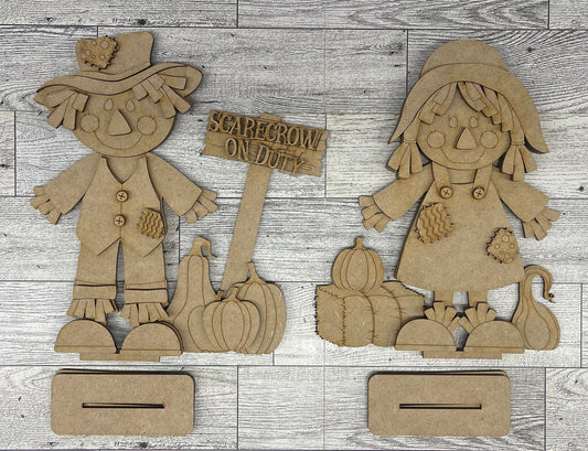 Boy and Girl Scarecrow with Pumpkins Stander - unpainted cutouts, ready to paint