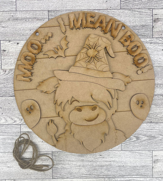 Boo... I mean Moo Halloween Highland Cow Door Sign - unpainted cutouts