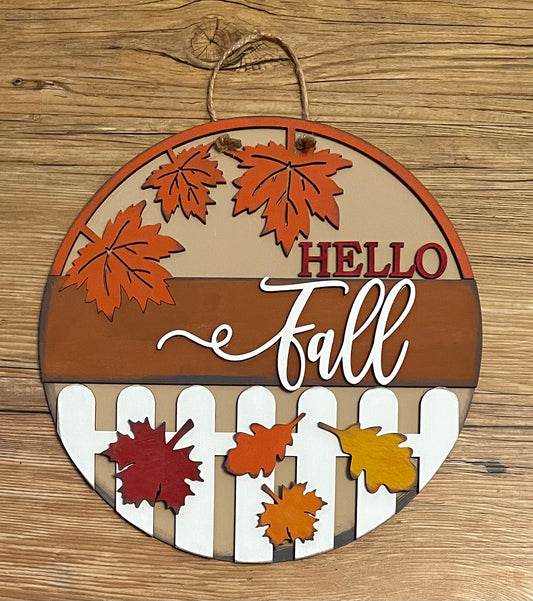 Hello Fall Leaves Door Sign Kit, DIY Kit - unpainted wood cutouts