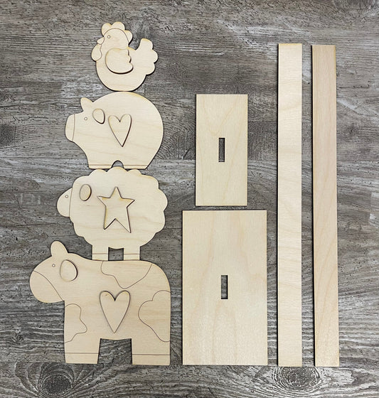 Farm Animal Stack cutouts ready for you to paint - Farmhouse, Cow, Pig, Chicken, Sheep