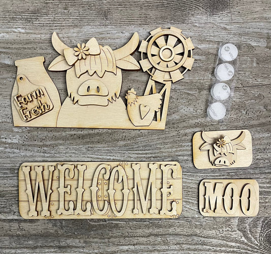 Highland Cow Sign cutouts, 11 or 16 inches unfinished cutouts with Round Door sign piece