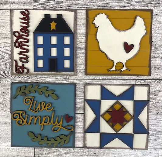 Farmhouse Decor blocks for Leaning Ladder set of 4 - unpainted wooden cutouts, ready for you to paint