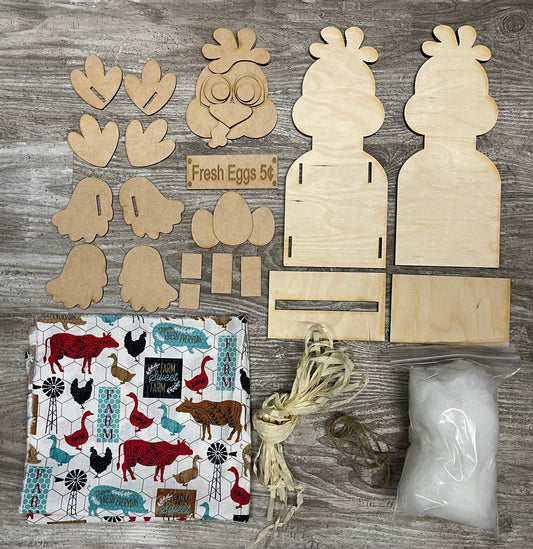 Chicken Sitter, 12 inches tall - unpainted wooden cutouts, ready for you to paint
