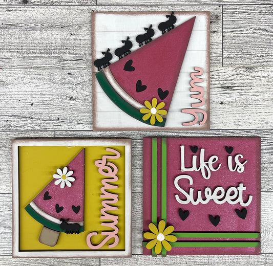 Watermelon Leaning Ladder and Blocks Kit, Watermelon DIY Unpainted Wooden Kit, DIY Leaning Ladder Kit
