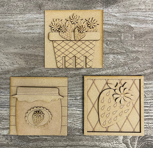 Strawberry Leaning Ladder and Blocks Kit, Strawberries DIY Unpainted Wooden Kit, DIY Leaning Ladder Kit