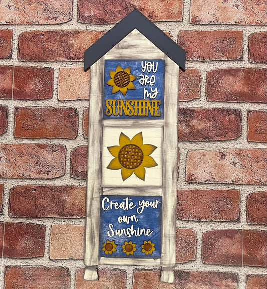 Sunflower Leaning Ladder and Blocks Kit, Beach DIY Unpainted Wooden Kit, DIY Leaning Ladder Kit