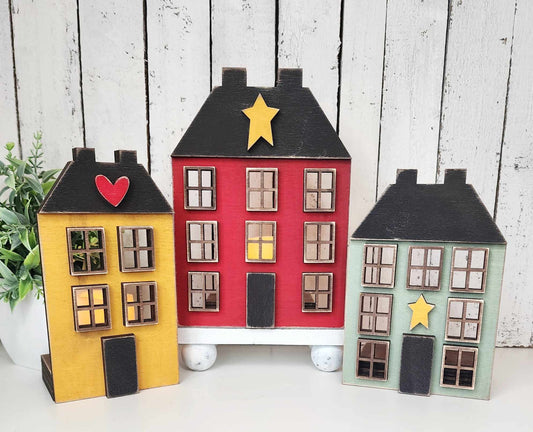 3 Salt Box Houses - Primitive Home Collection - cutouts - unpainted wooden cutouts, ready for you to paint