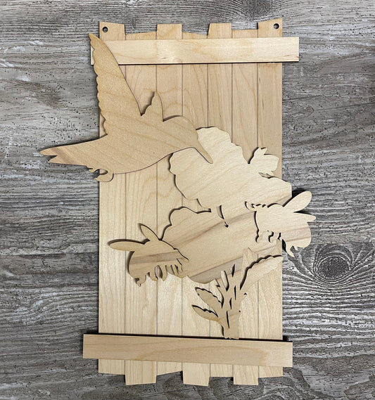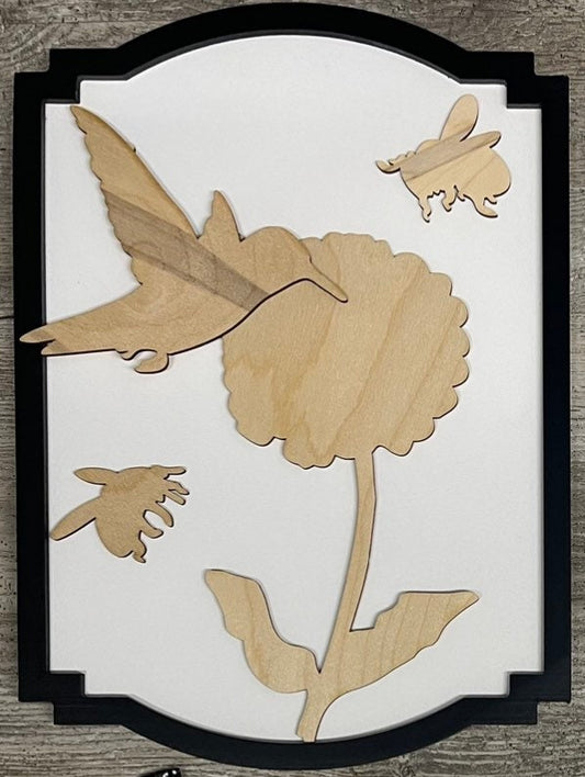 1 Flowers, Hummingbird and 2 Bee cutouts and sign ready for you to paint - back sign is included