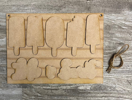 Life is Sweet Unpainted wooden pieces and 5 popsicles with sign and jute