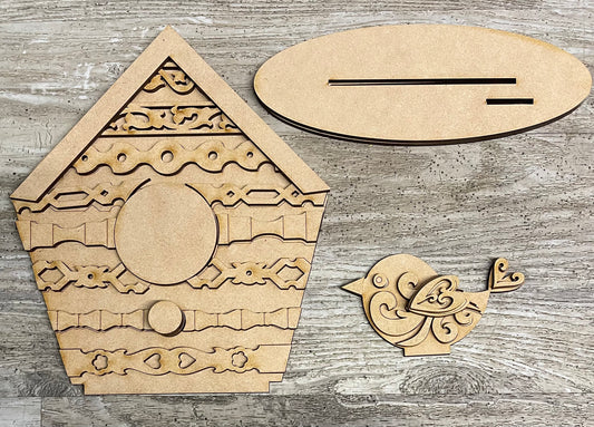 Spindle Birdhouse Sign kit, unfinished wooden Cutouts ready for you to paint